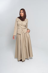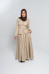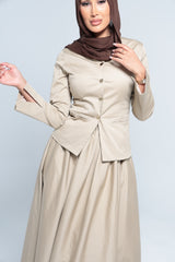 “The LANCÔME BEIGE JACKET is the ultimate blend of style and elegance. With gold buttons, darts, and side splits on the sleeves, this jacket will make you stand out in any occasion. Pair it with the matching skirt for a complete look that can transition effortlessly from corporate to evening. (Slay the day or night!)"