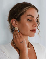 Height of earring: 25mm, width front of earring: 20mm. All Bling Bar jewels come with a protective pink pouch that also doubles as a polishing cloth.