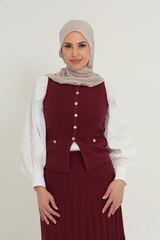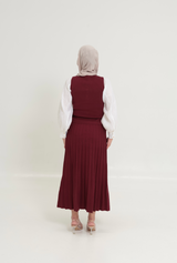 The WITCHERY KNIT SET includes a sophisticated vest and skirt, engineered for adaptability across different contexts. The vest is equipped with gold buttons and functional pockets, improving both visual appeal and utility. The knit skirt presents intricate pleats, rendering this outfit appropriate for professional settings as well as informal gatherings. It is complemented by our Avenue shirt.