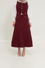 The WITCHERY KNIT SET consists of a stylish vest and skirt, designed for versatility in various settings. The vest features gold buttons and functional pockets, enhancing both aesthetics and practicality. The knit skirt incorporates detailed pleats, making this ensemble suitable for both corporate environments and casual outings.