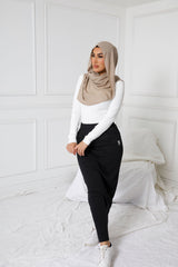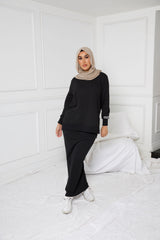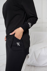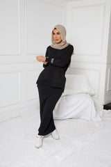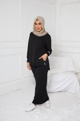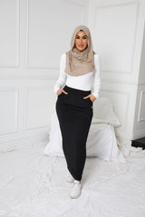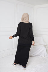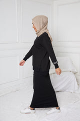 Elevate your summer wardrobe with our PORSCHA SPORTS SKIRT in black! This matching pencil skirt and sweater set features a trendy logo and side pockets, perfect for stylish summer walks. The light fabric makes it comfortable for all-day wear and can be paired with sneakers or sandals for a versatile look.