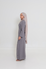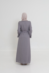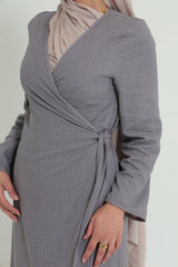Elevate your occasion wear with this luxurious maxi wrap dress, crafted from a refined blend of linen and viscose. Soft lavender piping details frame the silhouette, creating an understated yet sophisticated edge that commands attention. Fully lined for comfort and confidence, this versatile piece transitions seamlessly from holiday dinners to everyday elegance. Style with open heels for a contemporary look or closed shoes for timeless polish. Model Umz (164cm) wears size S, demonstrating the dress's flattering proportions across frame types.